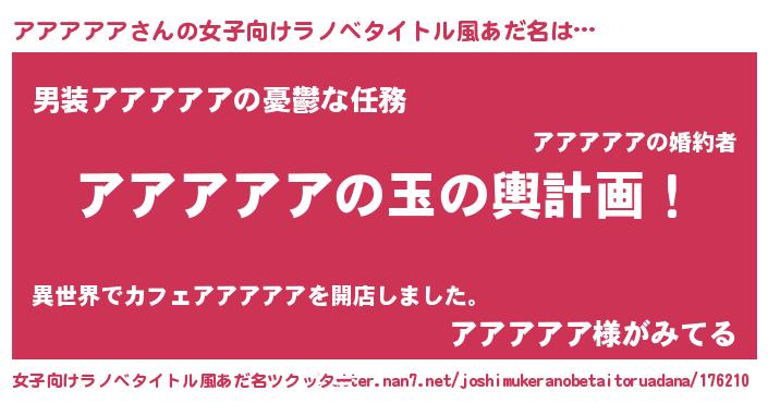 | 男性向けラノベタイトル風あだ名 | 『転生したらアアアアアだった件』 |
