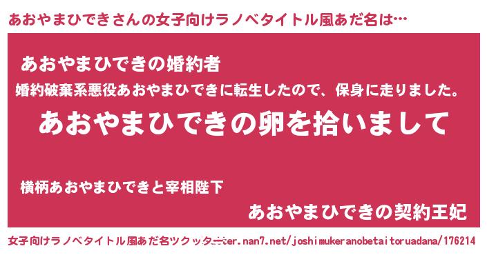 | 男性向けラノベタイトル風あだ名 | 『ダンジョンにあおやまひできを求めるのは間違っているだろうか』 |