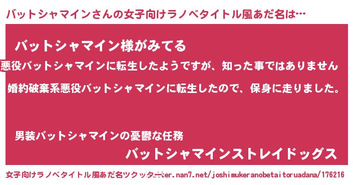 | 男性向けラノベタイトル風あだ名 | 『バットシャマインスレイヤー』 |