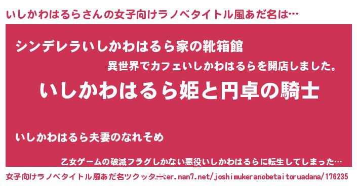 | 胡散臭い通販商品みたいなあだ名 | 『モテモテ間違いなし霊験あらたかなお札…その名も「いしかわはるら」』 |