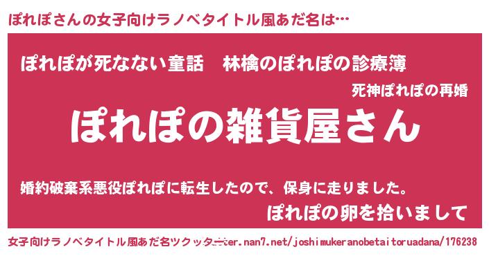 | 男性向けラノベタイトル風あだ名 | 『やはりぽれぽの青春ラブコメはまちがっている 』 |