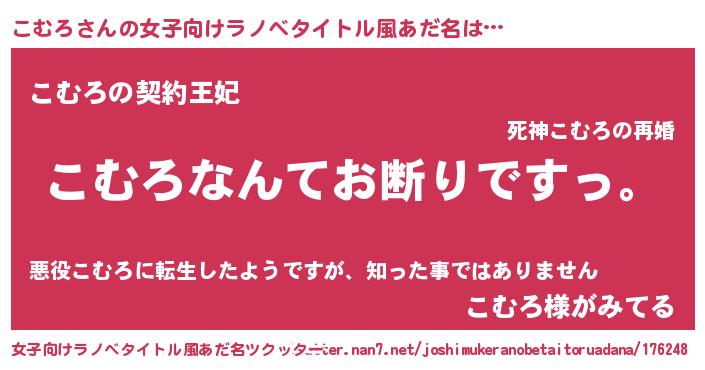 | 意味不明あだ名 | 『自称こむろ』『永久保存こむろ』 |