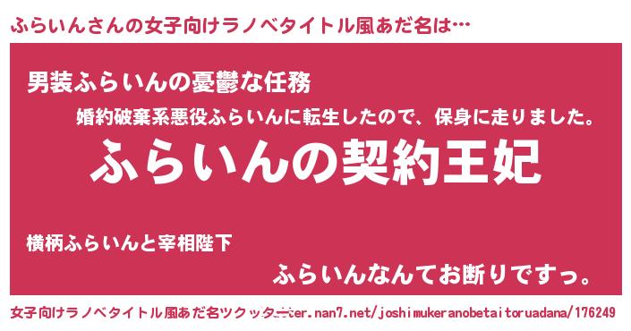 | ヘコむあだ名 | 『ふらいん(笑)』『ふらにー』 |