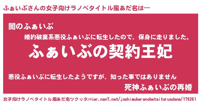| ヘコむあだ名 | 『ふぁいぶ(小並感)』『ふぁもー』 |