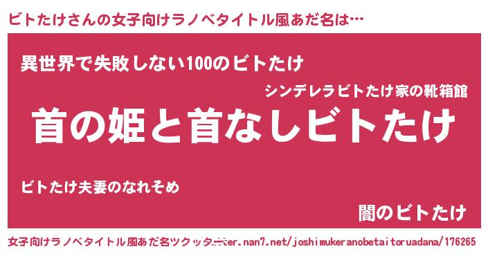 | 意味不明あだ名 | 『永久保存ビトたけ』『自称ビトたけ』 |