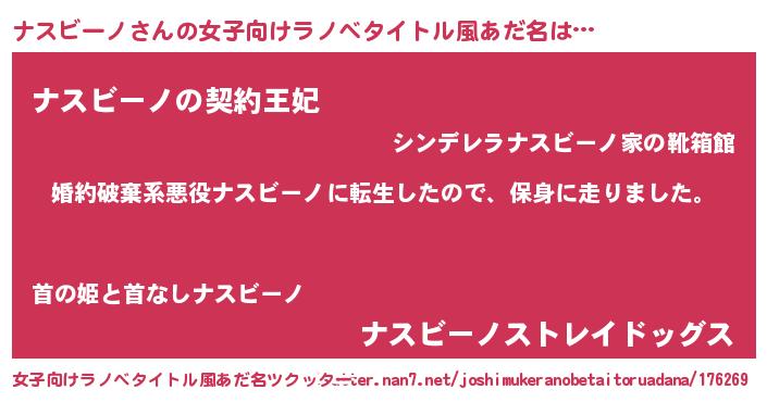 | 男性向けラノベタイトル風あだ名 | 『ナスビーノスレイヤー』 |