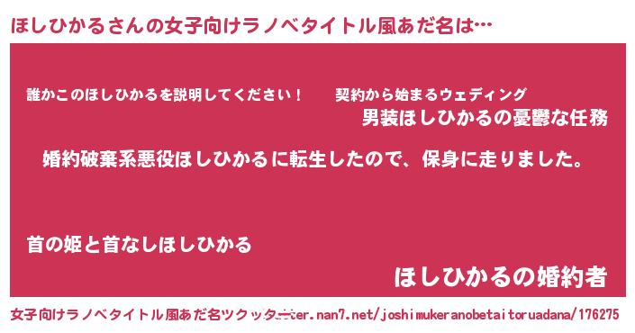 | 男性向けラノベタイトル風あだ名 | 『転生したらほしひかるだった件』 |