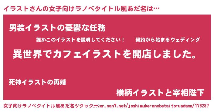 | 男性向けラノベタイトル風あだ名 | 『誰もが恐れるあのイラストが、ぼくの専属メイドになるようです。』 |