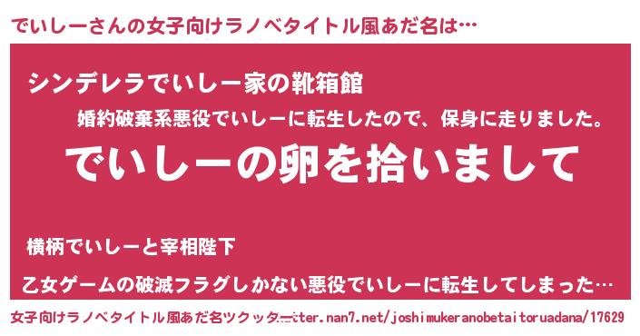 | 男性向けラノベタイトル風あだ名 | 『ダンジョンにでいしーを求めるのは間違っているだろうか』 |