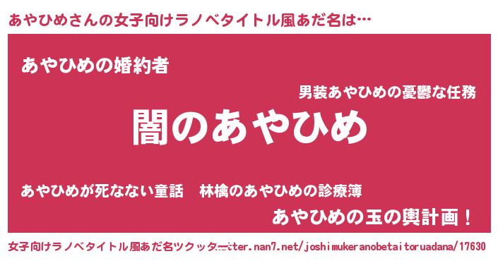 | 男性向けラノベタイトル風あだ名 | 『Re:あやひめから始める異世界生活』 |