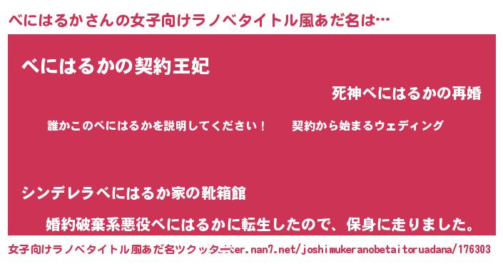 | 男性向けラノベタイトル風あだ名 | 『ベニハルカアートオンライン』 |