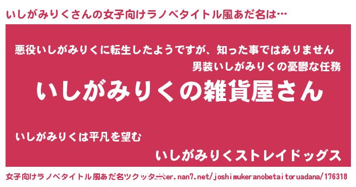 | 男性向けラノベタイトル風あだ名 | 『やはりいしがみりくの青春ラブコメはまちがっている 』 |