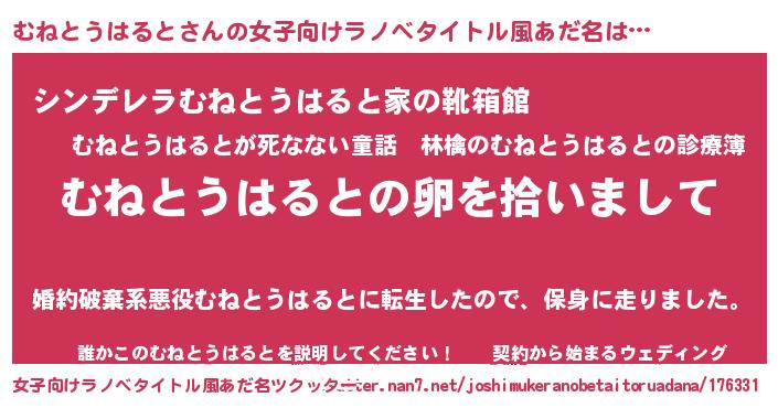 | 胡散臭い通販商品みたいなあだ名 | 『伝統あるサプリメント…その名も「むねとうはると」』 |