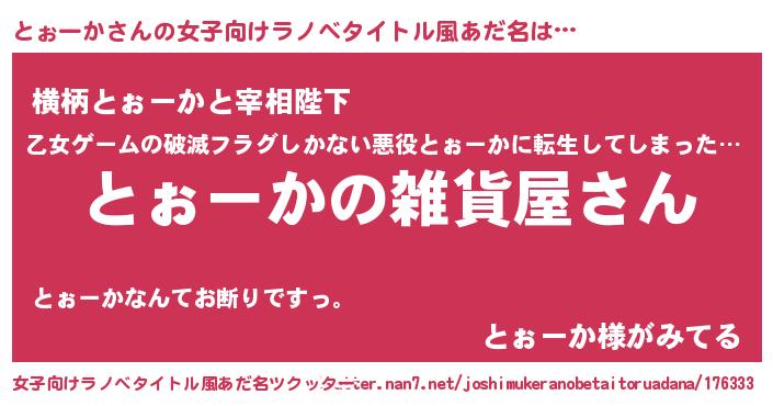 | 男性向けラノベタイトル風あだ名 | 『やはりとぉーかの青春ラブコメはまちがっている 』 |