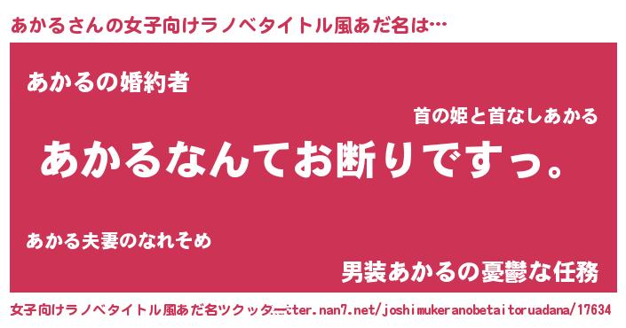 | 男性向けラノベタイトル風あだ名 | 『魔法科高校のあかる』 |