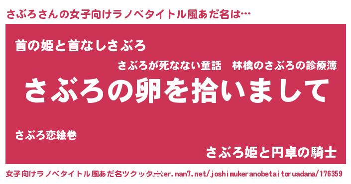 | 男性向けラノベタイトル風あだ名 | 『ダンジョンにさぶろを求めるのは間違っているだろうか』 |