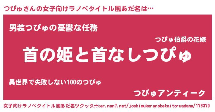 | 男性向けラノベタイトル風あだ名 | 『はたらくつぴゅさま!』 |