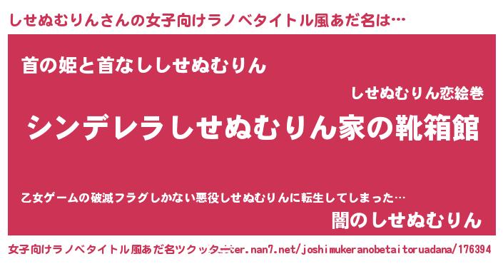 | 欧米人風あだ名 | 『しせぬむりん・ステッグマイヤー』 |