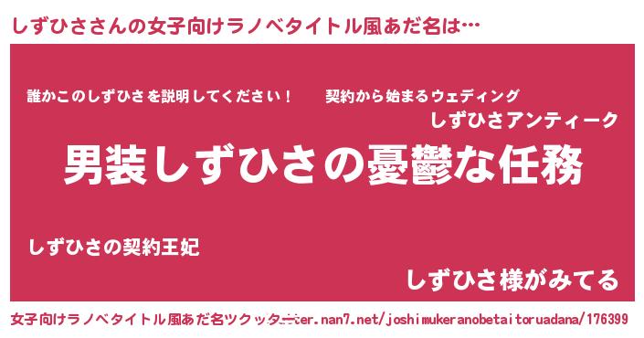 | 男性向けラノベタイトル風あだ名 | 『うちのしずひさが世界を掌握している!』 |