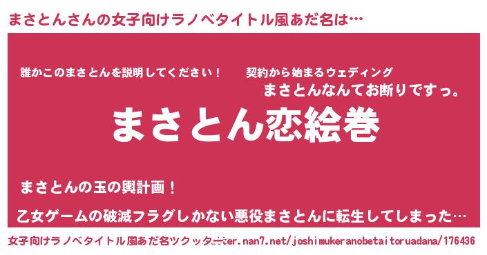 | 男性向けラノベタイトル風あだ名 | 『ノーゲーム・ノーマサトン』 |