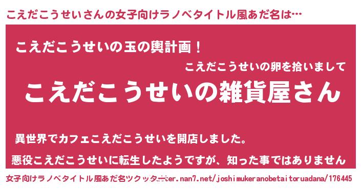 | 男性向けラノベタイトル風あだ名 | 『やはりこえだこうせいの青春ラブコメはまちがっている 』 |