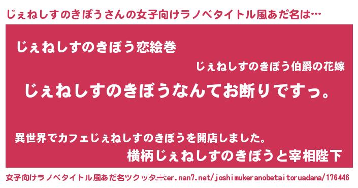 | 意味不明あだ名 | 『自称じぇねしすのきぼう』 |