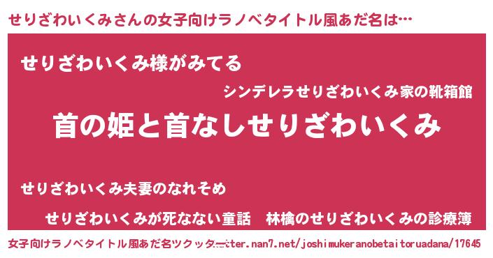 | 胡散臭い通販商品みたいなあだ名 | 『信頼と実績のサプリメント…その名も「せりざわいくみ」』 |