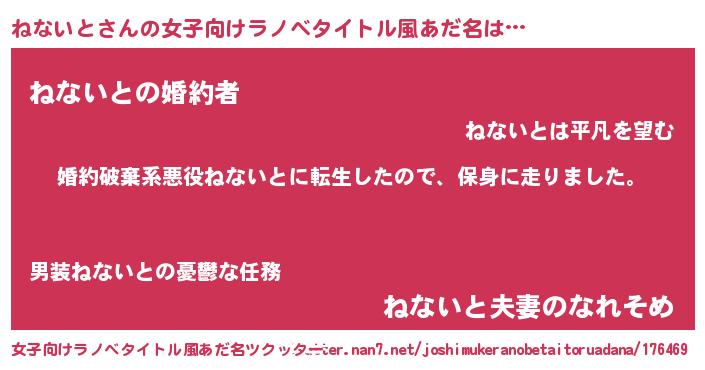 | 胡散臭い通販商品みたいなあだ名 | 『世界が平和になる高級そうな壺…その名も「ねないと」』 |