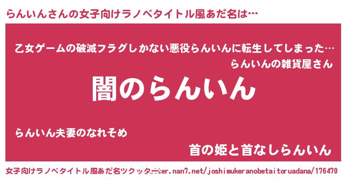 | 男性向けラノベタイトル風あだ名 | 『Re:らんいんから始める異世界生活』 |