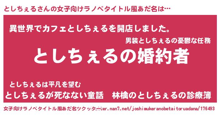 | 意味不明あだ名 | 『としちぇるフォーエバー』 |