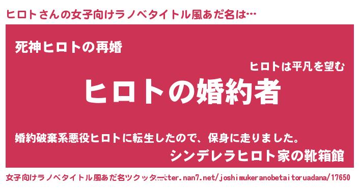 | 胡散臭い通販商品みたいなあだ名 | 『運命の人と巡り会える高級そうな絵画…その名も「ヒロト」』 |