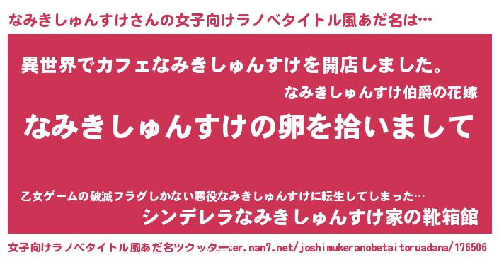 | 男性向けラノベタイトル風あだ名 | 『なみきしゅんすけの嫁は女の子じゃないと思った?』 |