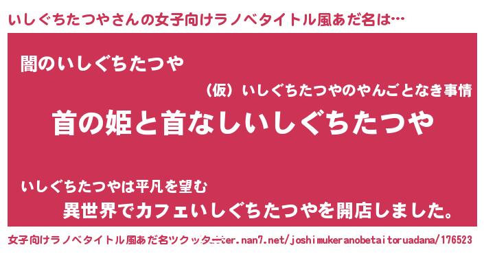 | 意味不明あだ名 | 『自称いしぐちたつや』 |