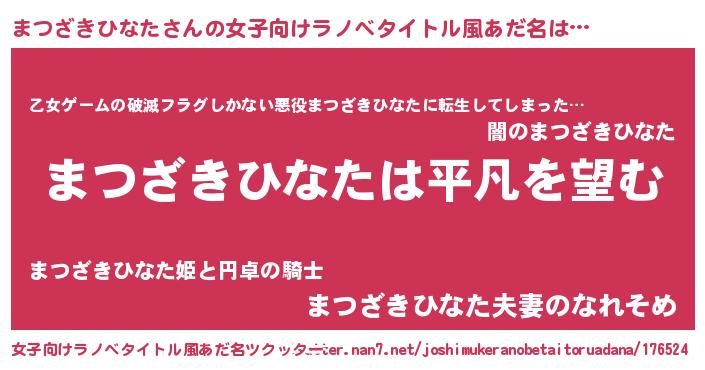 | 胡散臭い通販商品みたいなあだ名 | 『信頼と実績のペンダント…その名も「まつざきひなた」』 |