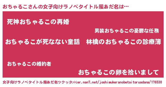 | 男性向けラノベタイトル風あだ名 | 『魔弾の王とおちゃるこ』 |