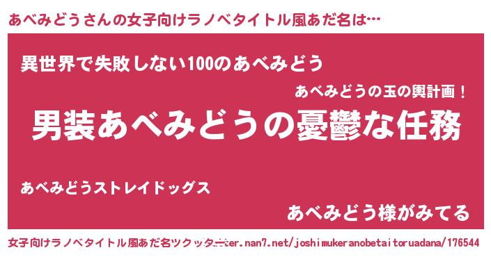 | ヘコむあだ名 | 『あべみどう(爆)』『あべお』 |