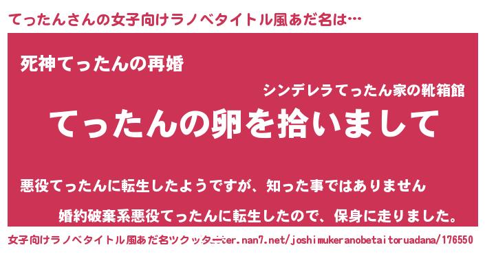 | 男性向けラノベタイトル風あだ名 | 『ダンジョンにてったんを求めるのは間違っているだろうか』 |