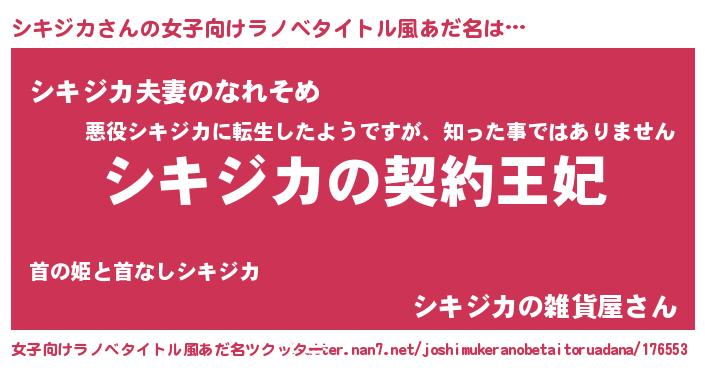 | 男性向けラノベタイトル風あだ名 | 『シキジカという概念が存在しない退屈な世界 』 |