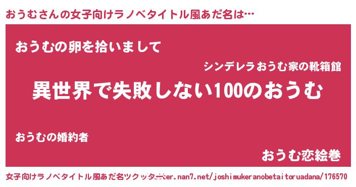 | 男性向けラノベタイトル風あだ名 | 『おうむという概念が存在しない退屈な世界 』 |