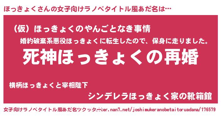 | 男性向けラノベタイトル風あだ名 | 『ノーゲーム・ノーホッキョク』 |