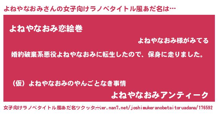 | 男性向けラノベタイトル風あだ名 | 『転生したらよねやなおみだった件』 |