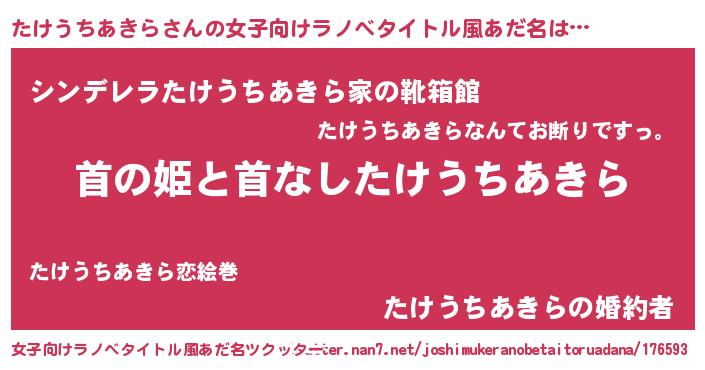 | 男性向けラノベタイトル風あだ名 | 『はたらくたけうちあきらさま!』 |