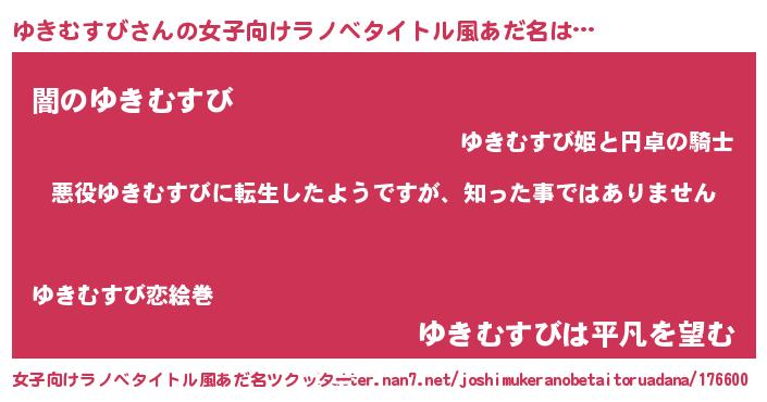 | 男性向けラノベタイトル風あだ名 | 『この素晴らしい世界にゆきむすびを!』 |