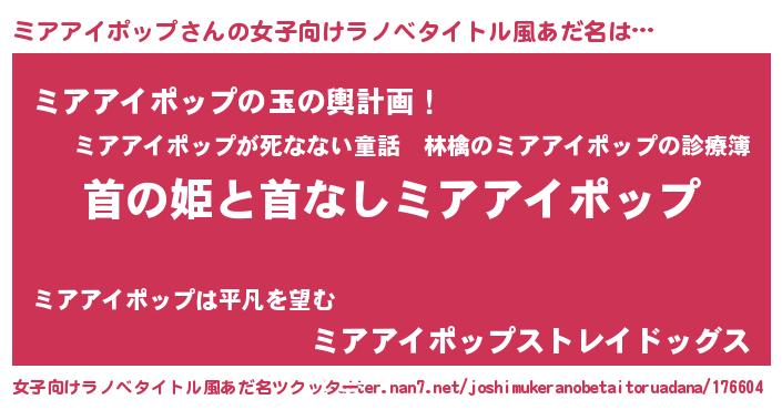 | 男性向けラノベタイトル風あだ名 | 『はたらくミアアイポップさま!』 |