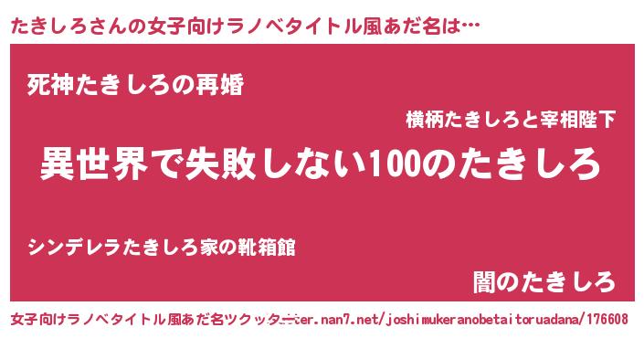 | 男性向けラノベタイトル風あだ名 | 『たきしろという概念が存在しない退屈な世界 』 |