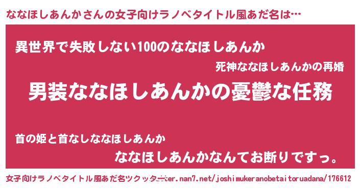 | 意味不明あだ名 | 『永久保存ななほしあんか』 |