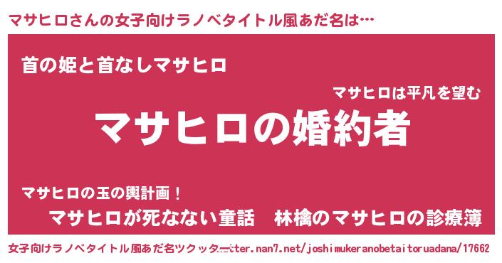 | 欧米人風あだ名 | 『マサヒロクリステル』 |