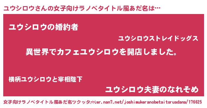 | ヒーロー風カッコイイあだ名 | 『ネオユウシロウ』『最強戦士ユウシロウ』 |