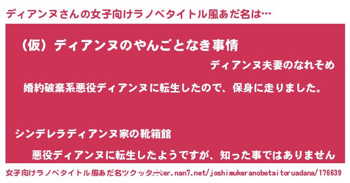 | 胡散臭い通販商品みたいなあだ名 | 『必ず成功するブレスレット…その名も「ディアンヌ」』 |