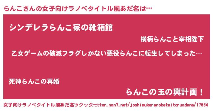 | ヘコむあだ名 | 『らんにゅー』『らんこ(震え声)』 |